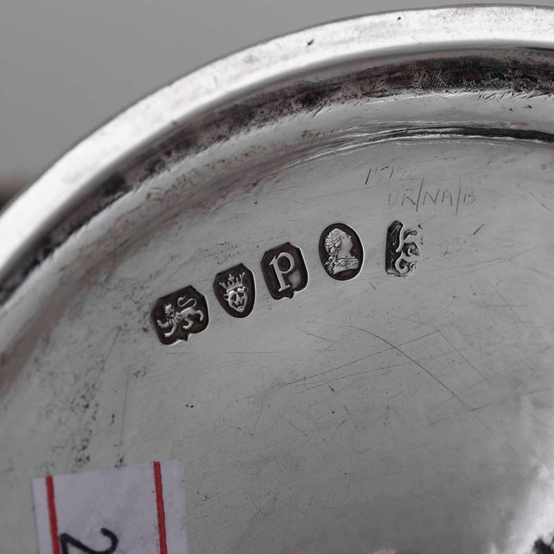 Caffettiera. Argento fuso, sbalzato e cesellato. Londra 1790. Marchio dell’Argentiere consunto di difficile lettura (Hester [..]