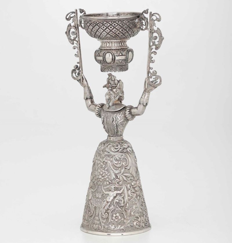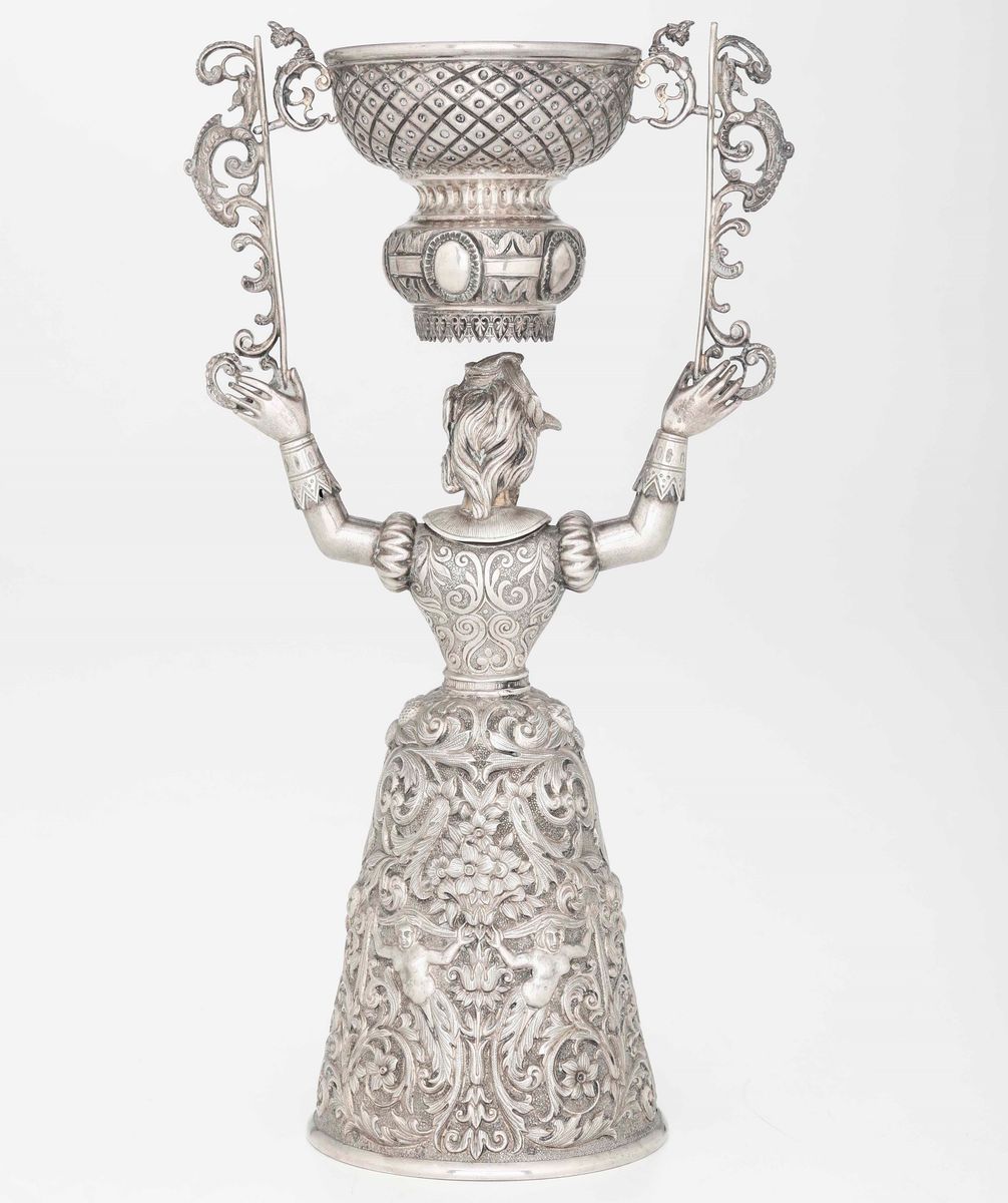 Coppa nuziale in argento sbalzato e cesellato. Manifattura europea (Germania?) XX secolo