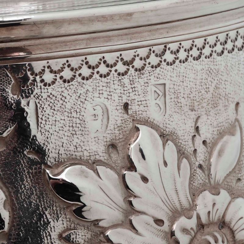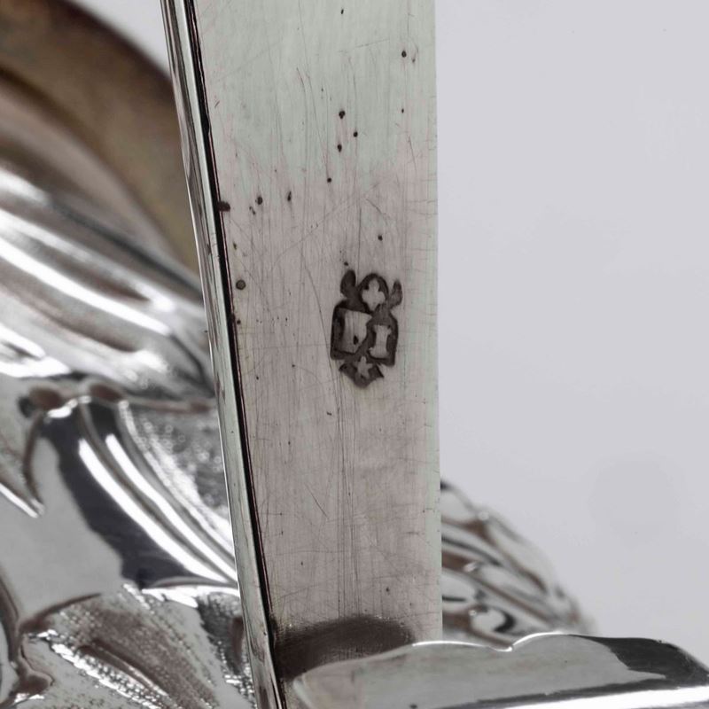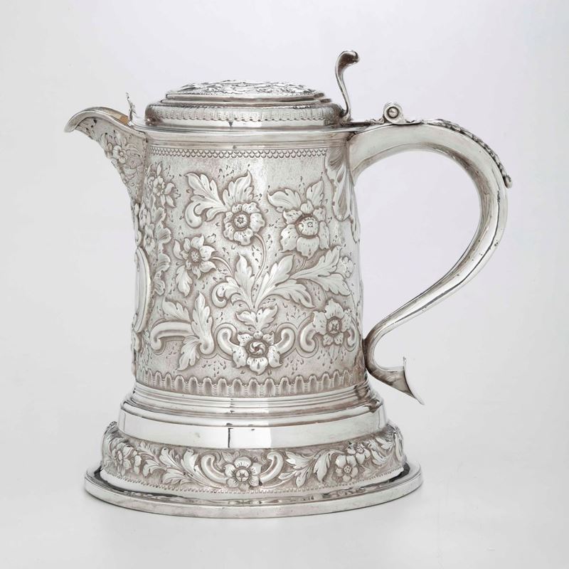 Grande tankard. Argento fuso, sbalzato e dorato. Inghilterra XIX-XX secolo, marchi della città di Londra per l’anno 1697, e dell’argentiere (probabilmente non pertinente)