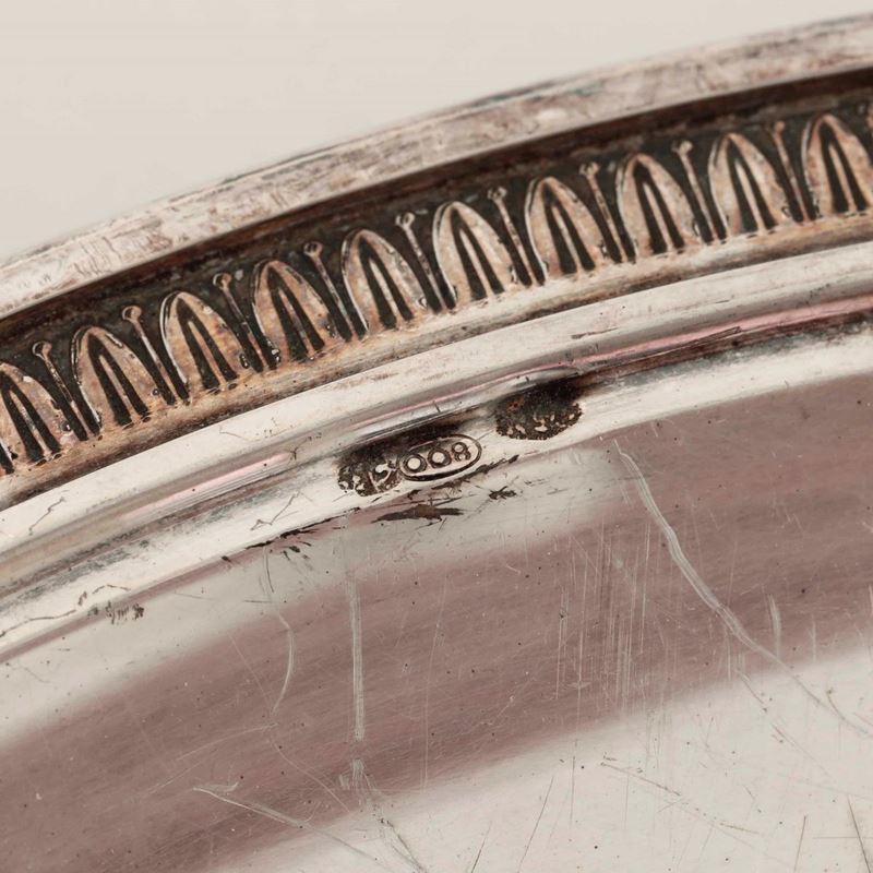 Insieme di quattro vassoi in argento di cui due tondi e due quadrati. Argenteria italiana del XX secolo