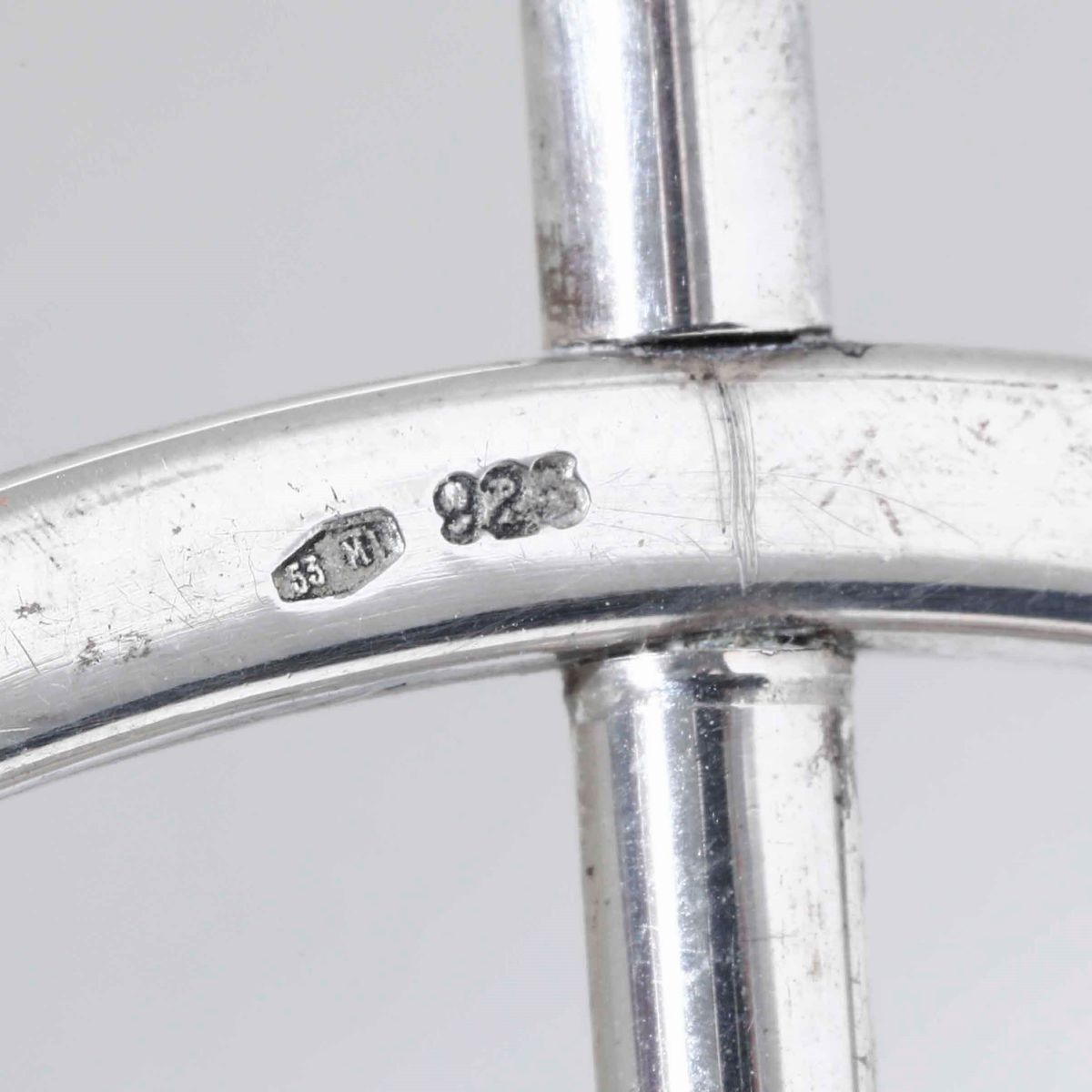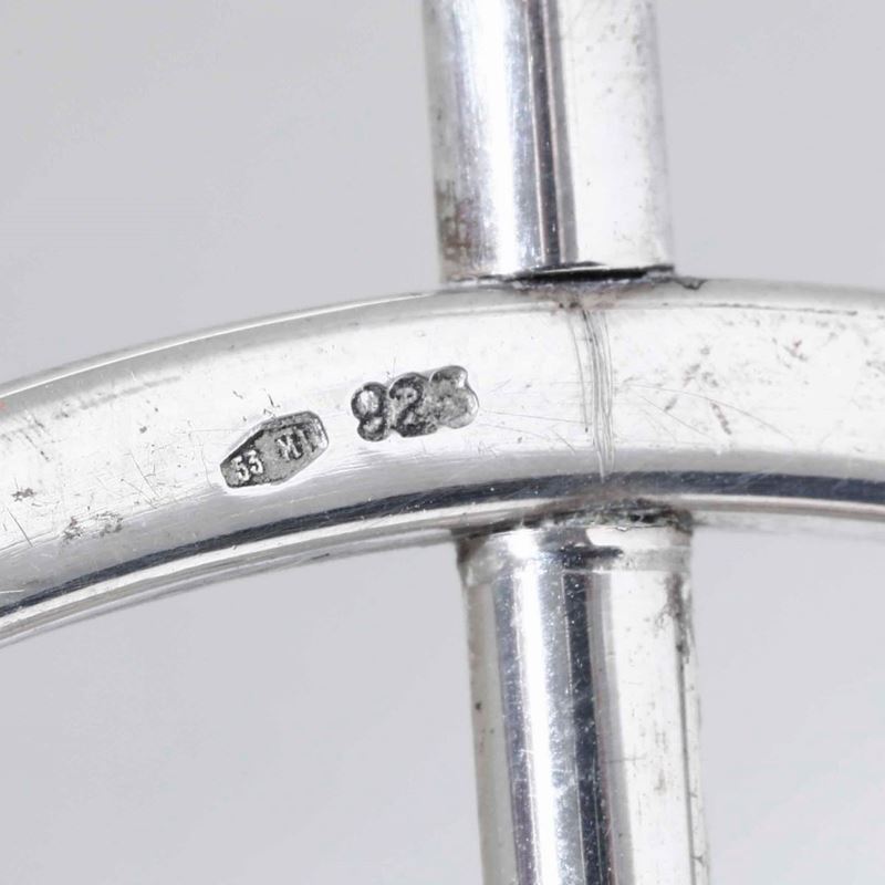 Lente da tavolo in argento a forma di timone. Argenteria artistica milanese del XX secolo. Argentiere Kohler & Schaefer