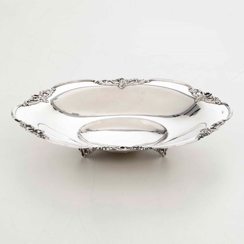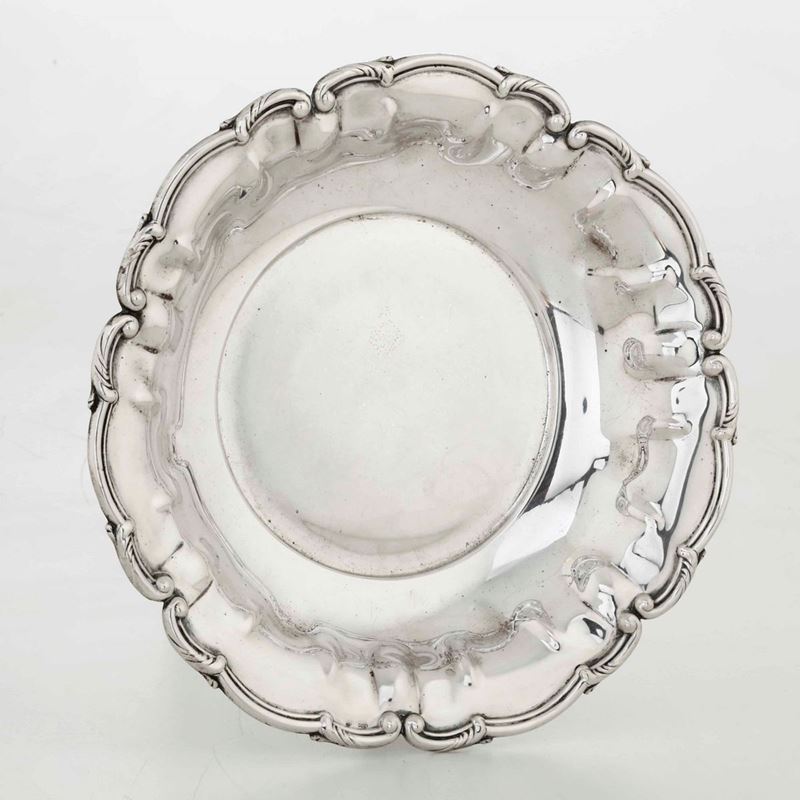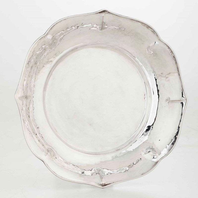 Lotto di piatti e centrotavola in argento. Argenteria italiana del XX secolo. Argentieri differenti