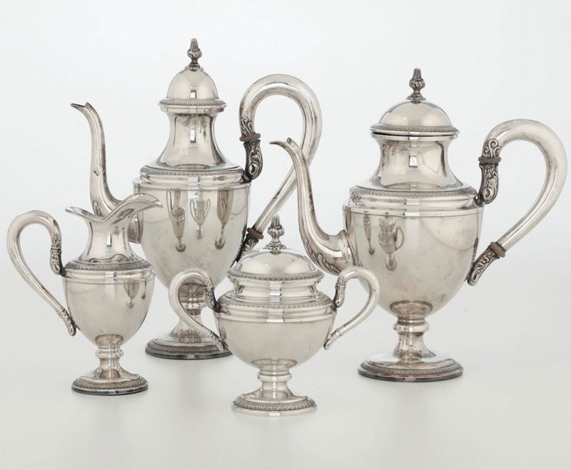 Servizio da tè e caffè in argento. Argenteria artistica italiana del XX secolo. Argentiere Luigi Angeleri (?) Alessandria [..]