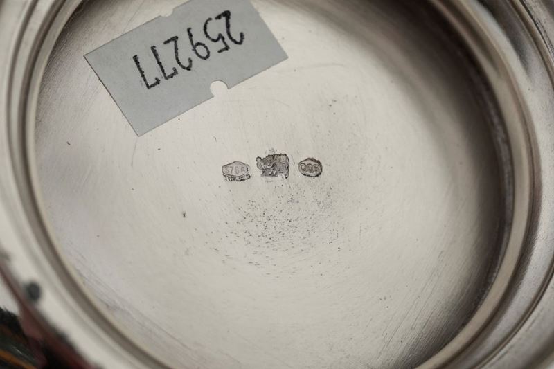 Servizio da tè e caffè in argento. Argenteria artistica italiana del XX secolo. Argentiere Peruggia & C., Alessandria