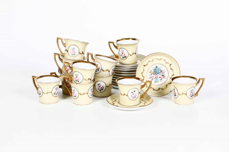 Undici tazze da caffè con piattino Manifattura indeterminata, XX secolo, decorazione di pittore indipendente