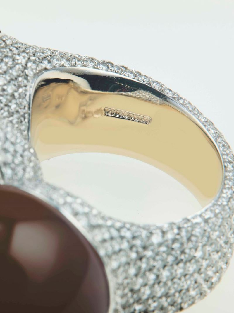Citrine, diamond and gold ring. Signed Vhernier