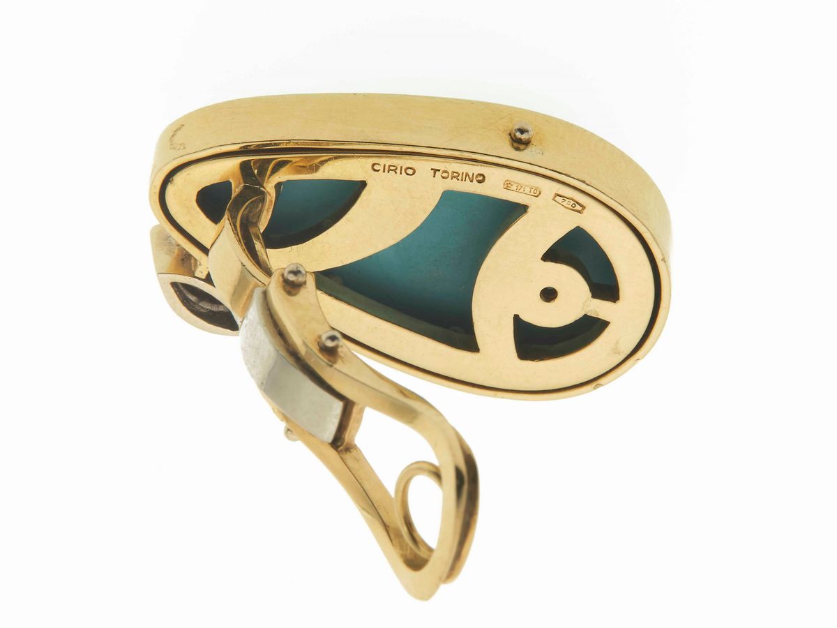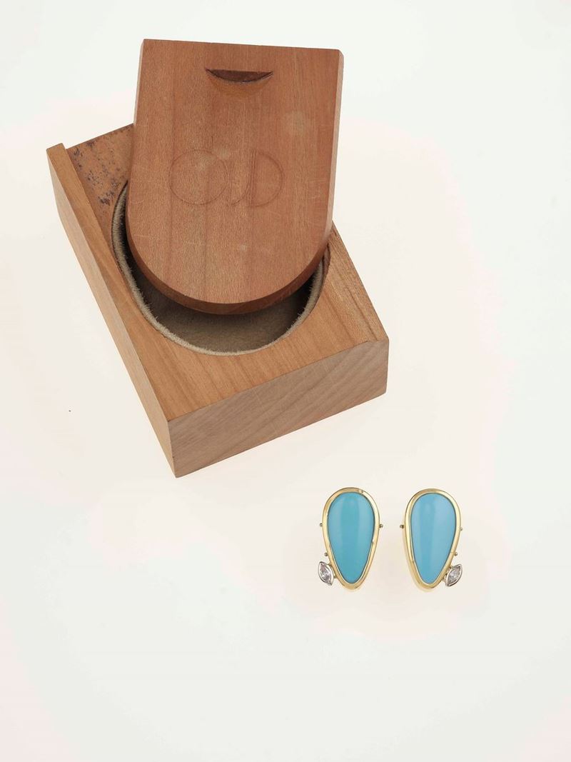 Pair of turquoise and diamond earrings. Signed Cirio, Torino