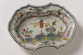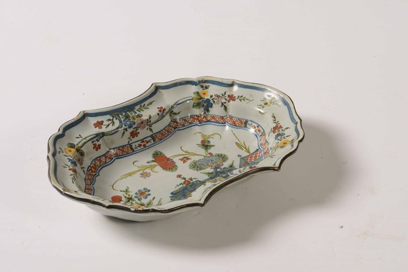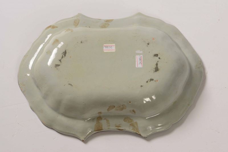 Maiolica decorata con motivo del "garofano" e con nastro a graticcio