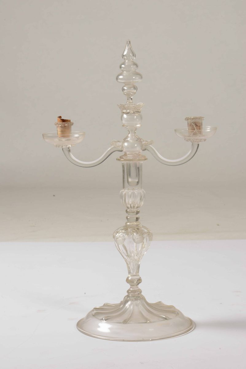Candelabro a due fiamme in vetro soffiato. XX secolo