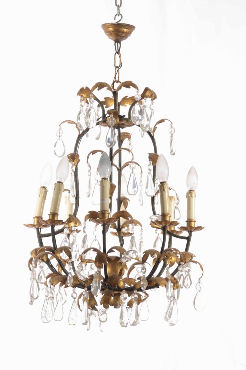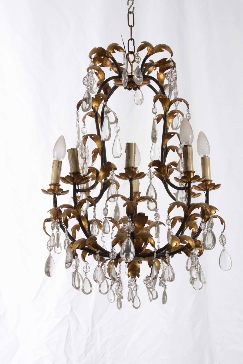 ornati a motivi fogliacei in metallo dorato e pendenti in vetro