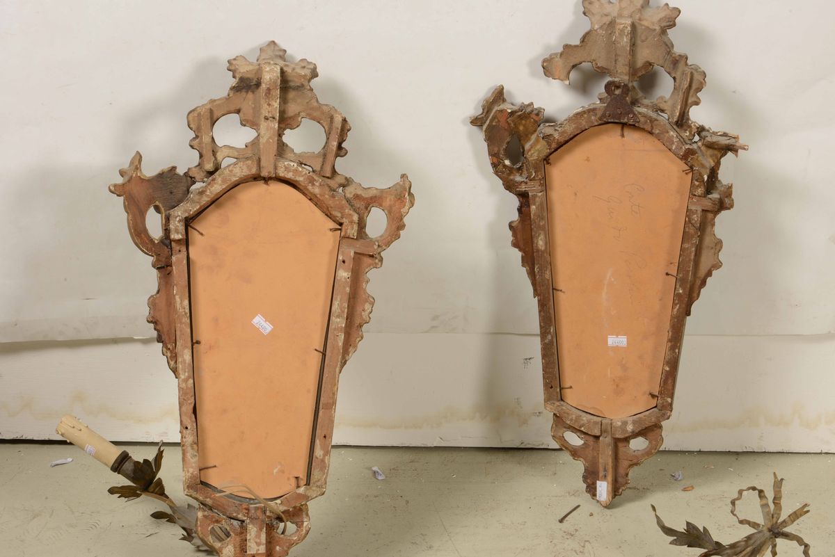 Coppia di ventoline in legno intagliato e dorato. XVIII-XIX secolo