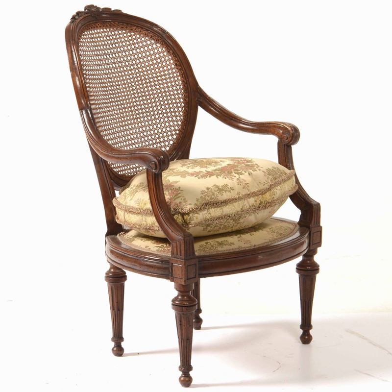Poltrona Luigi XVI in legno intagliato e cannetè. Fine XVIII secolo