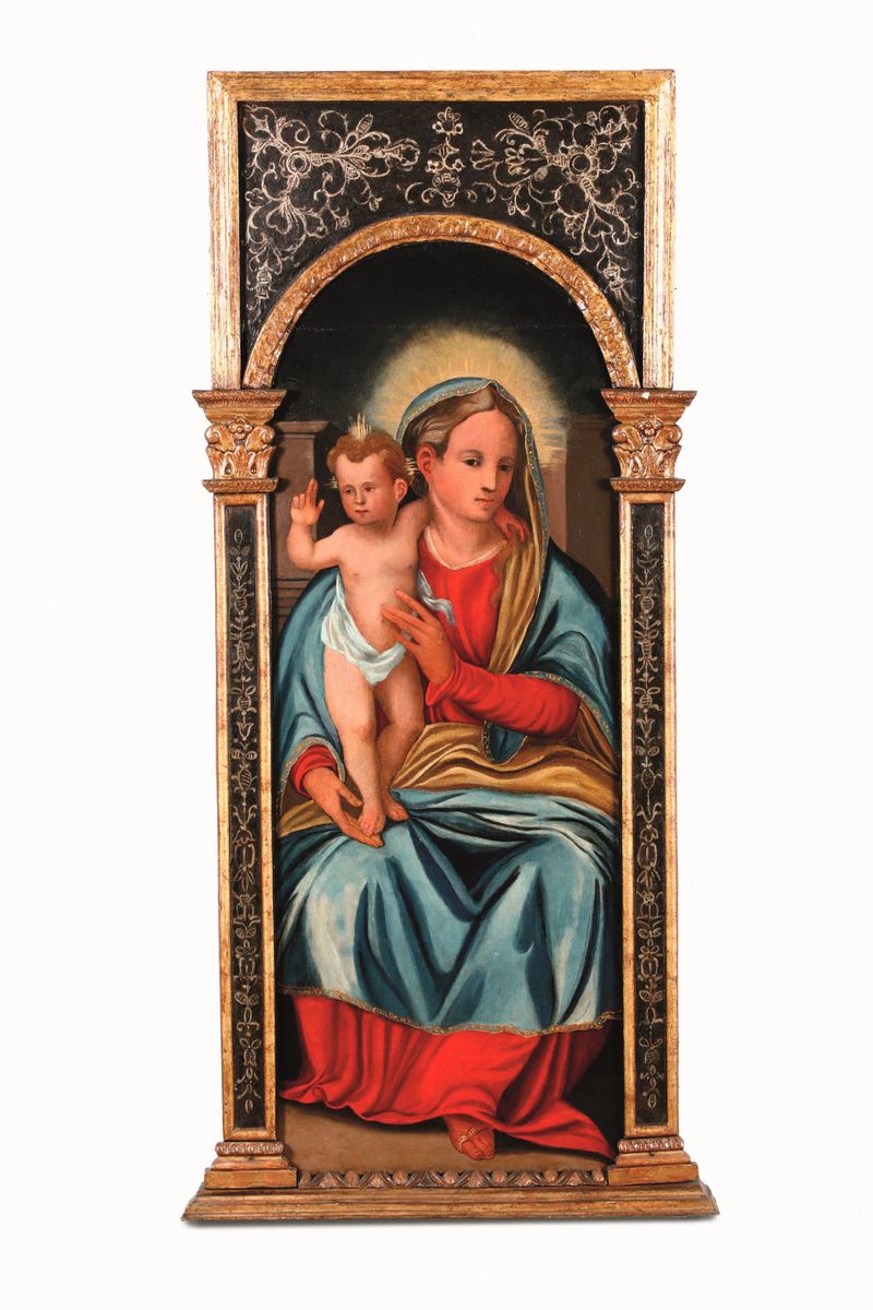 Scuola italiana del XVI secolo Madonna col Bambino affiancata da Santi