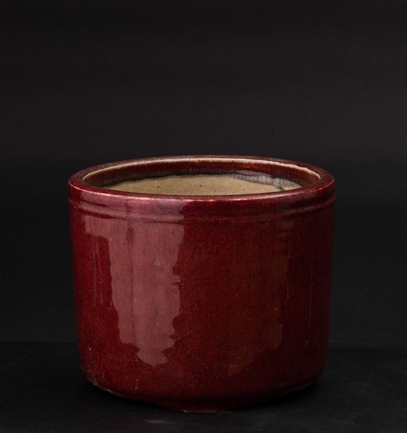 Brushpot in porcellana monocroma color sangue di bue, Cina, Dinastia Qing, XIX secolo