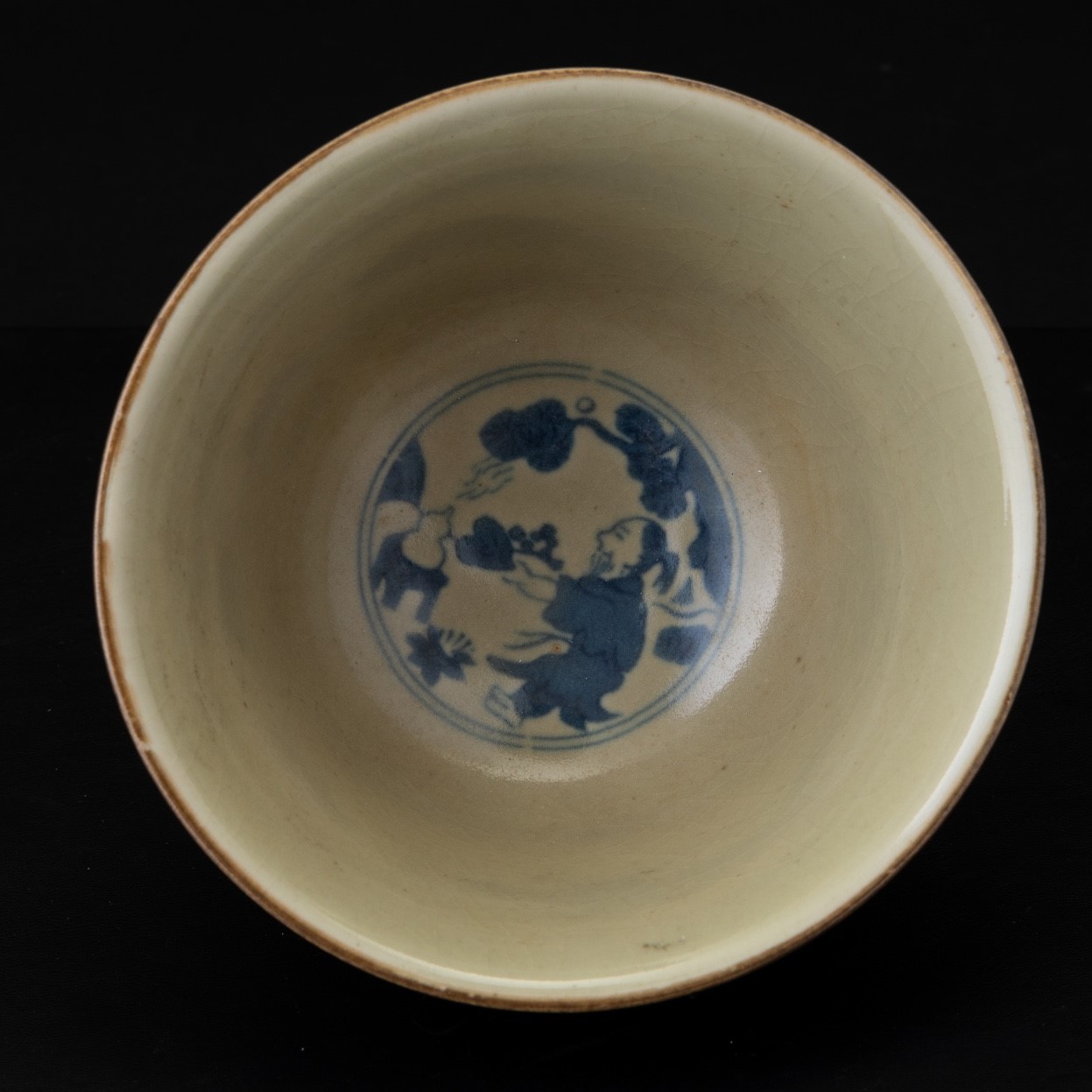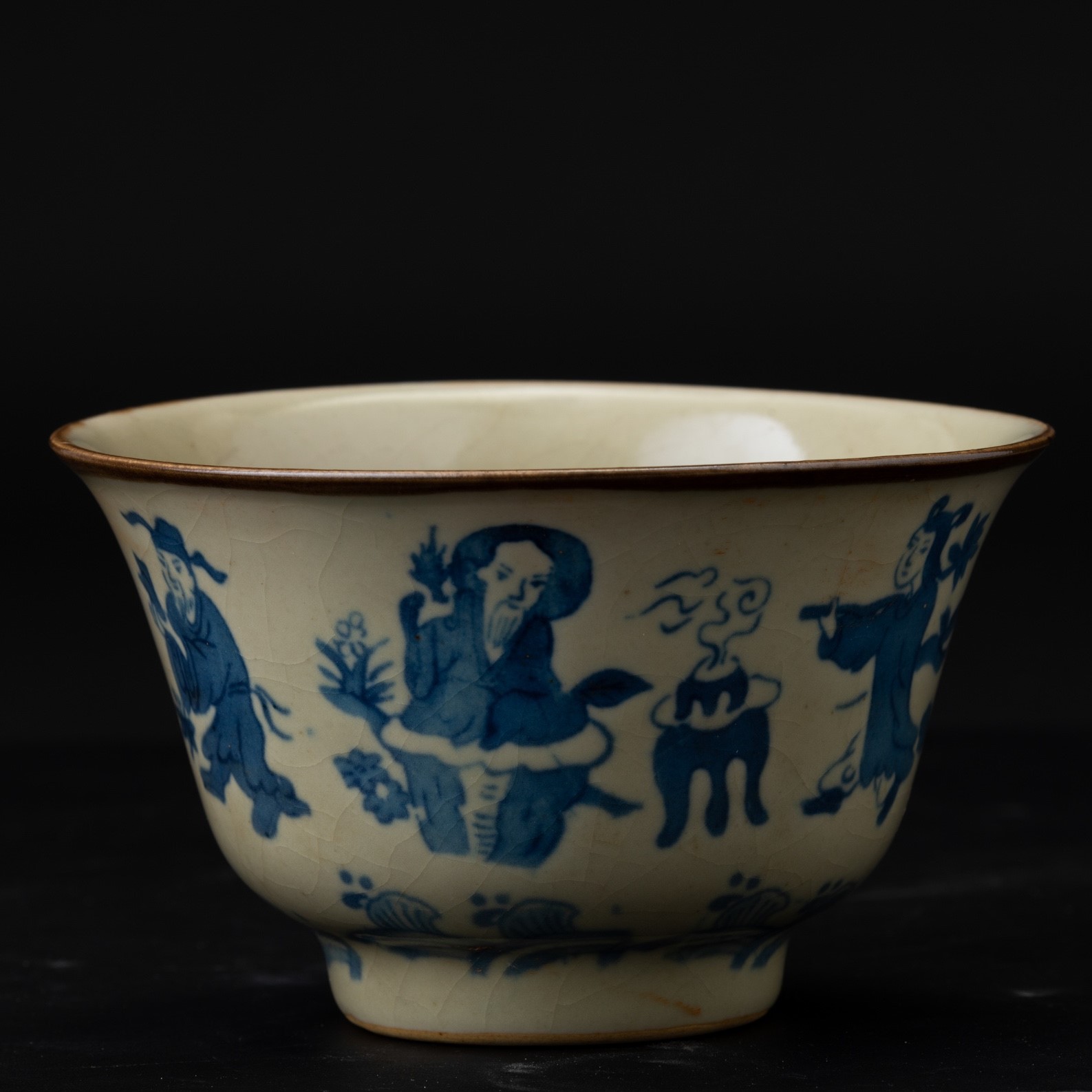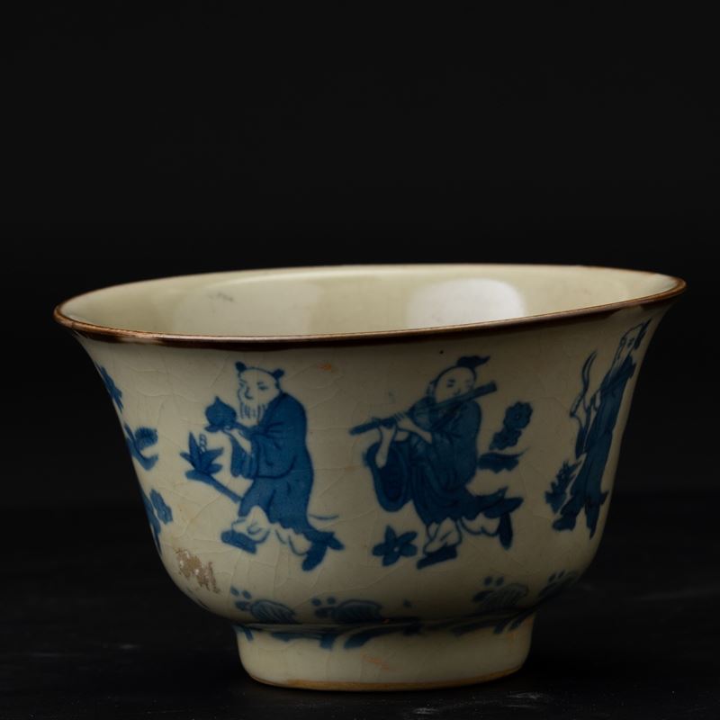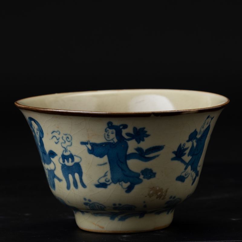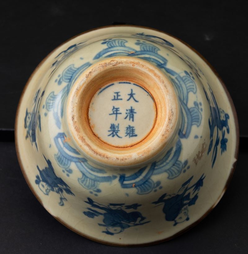 Ciotola in porcellana con personaggi sui toni del blu, Cina, Dinastia Qing, XIX secolo