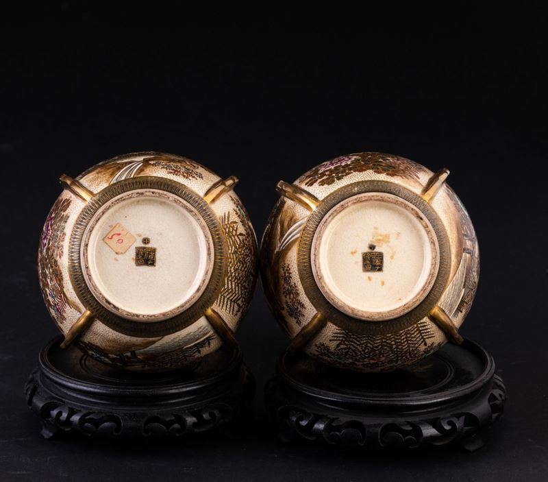 Coppia di vasi in porcellana con decori floreali e soggetti naturalistici entro riserve, Giappone, periodo Meiji (1868-19 [..]