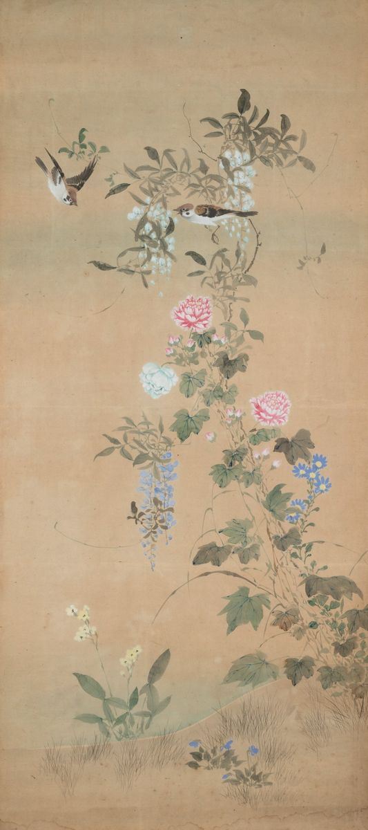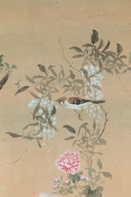 Dipinto su carta raffigurante uccellini tra i rami in fiore, Cina, Dinastia Qing, XIX secolo