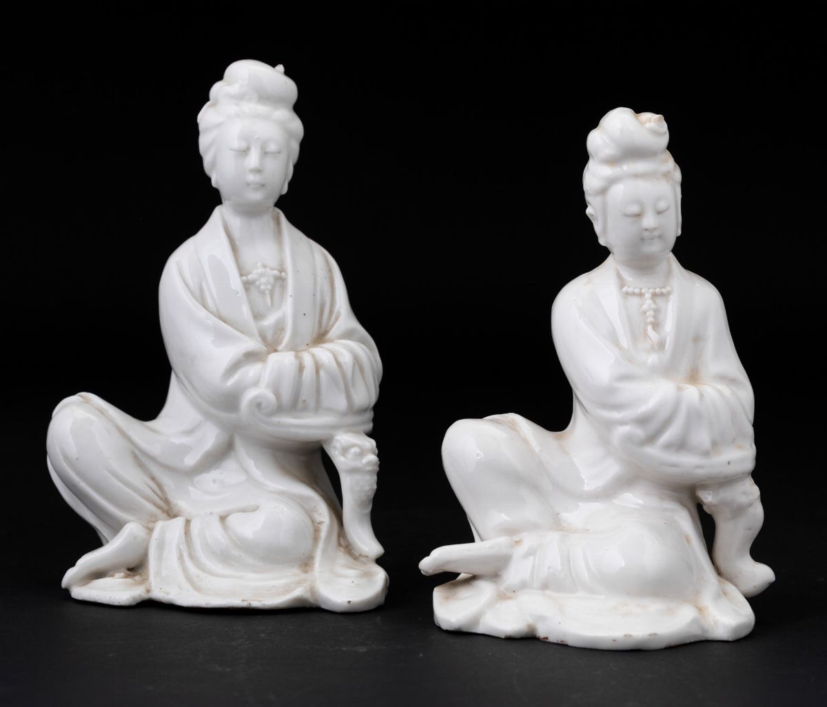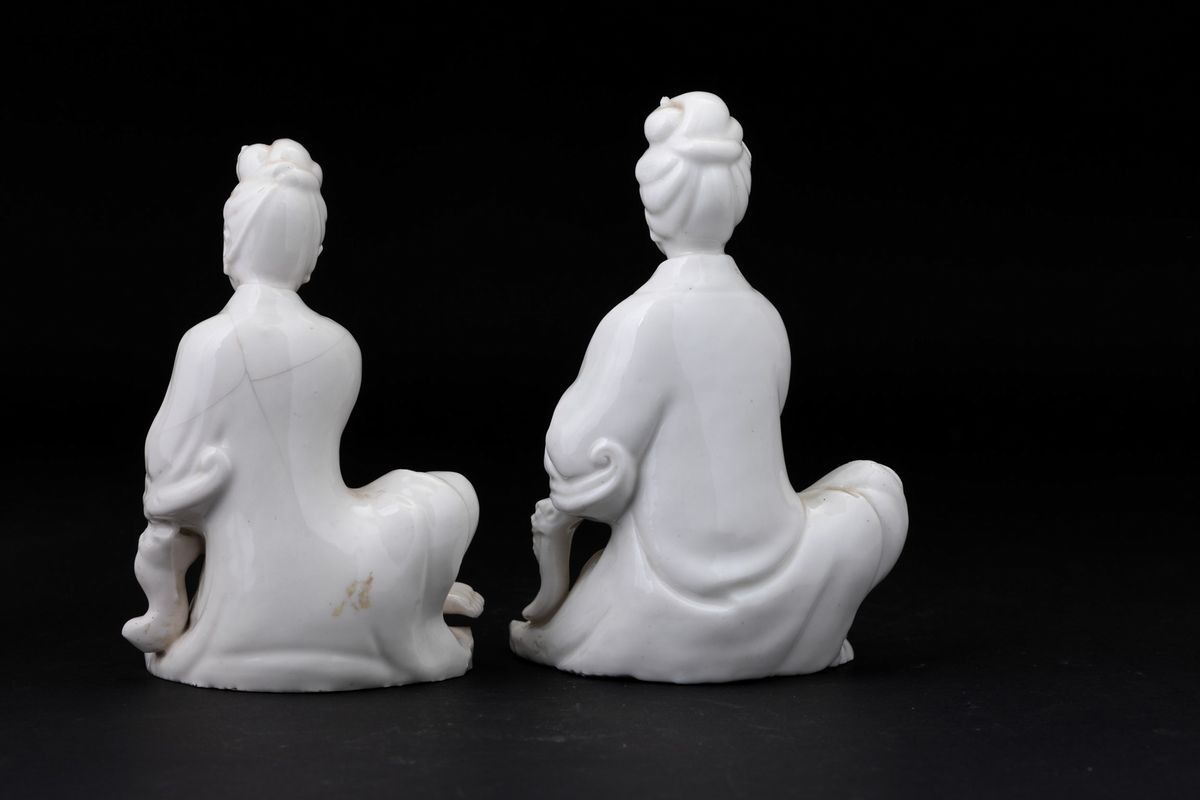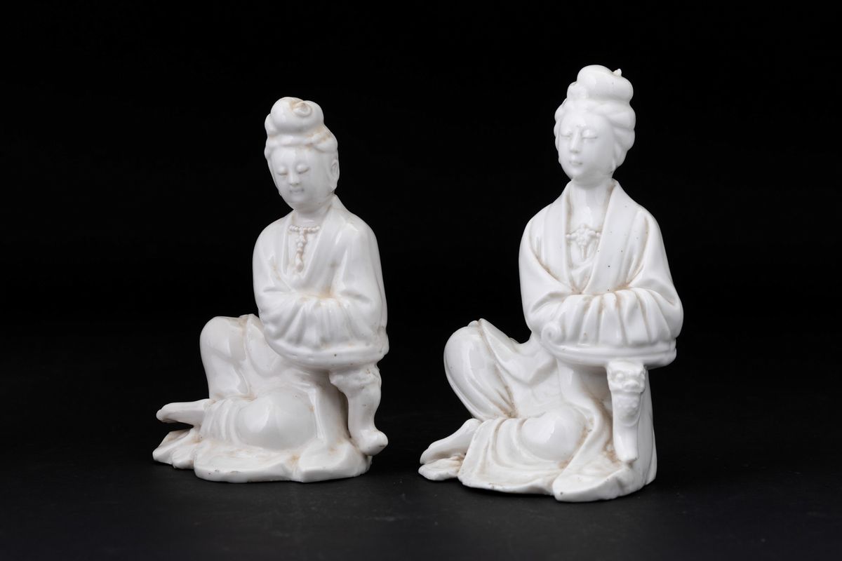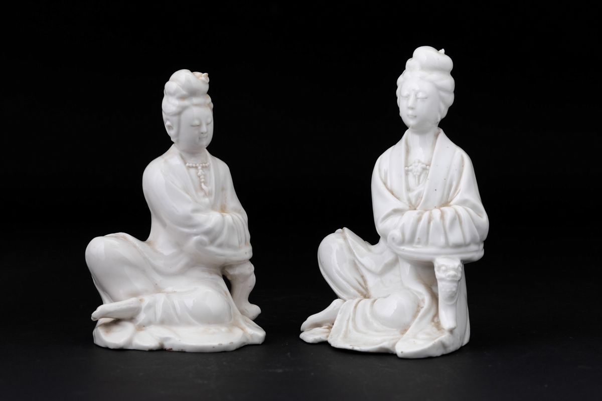 Due figure di Guanyin in porcellana Blanc de Chine, Cina, Dinastia Qing, XIX secolo