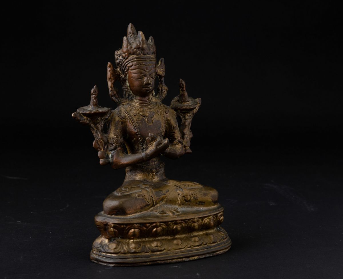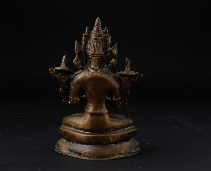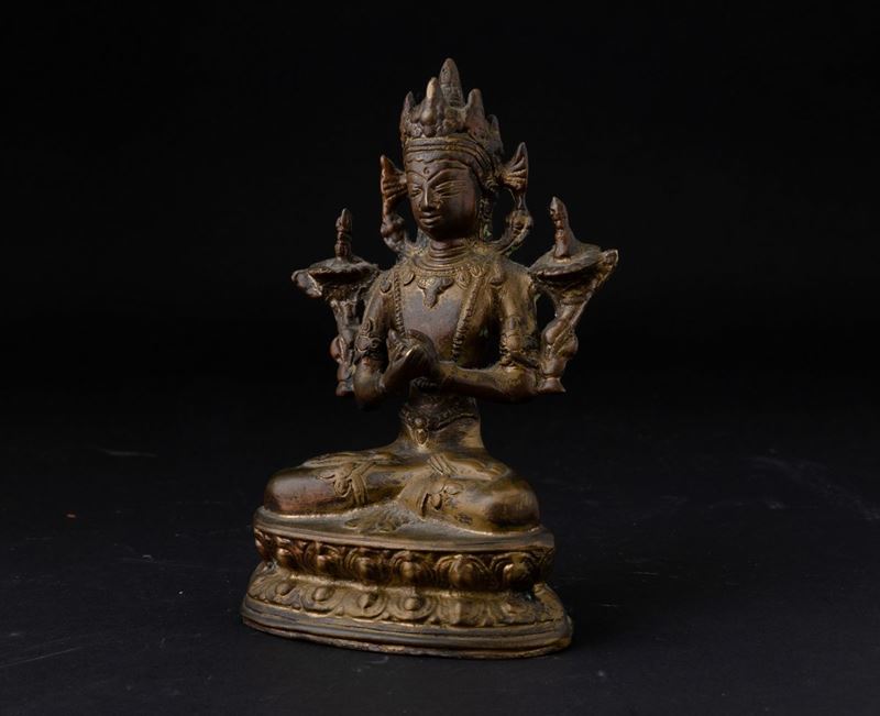 Figura di Buddha seduto su fiore di loto in metallo, Cina, Dinastia Qing, XIX secolo