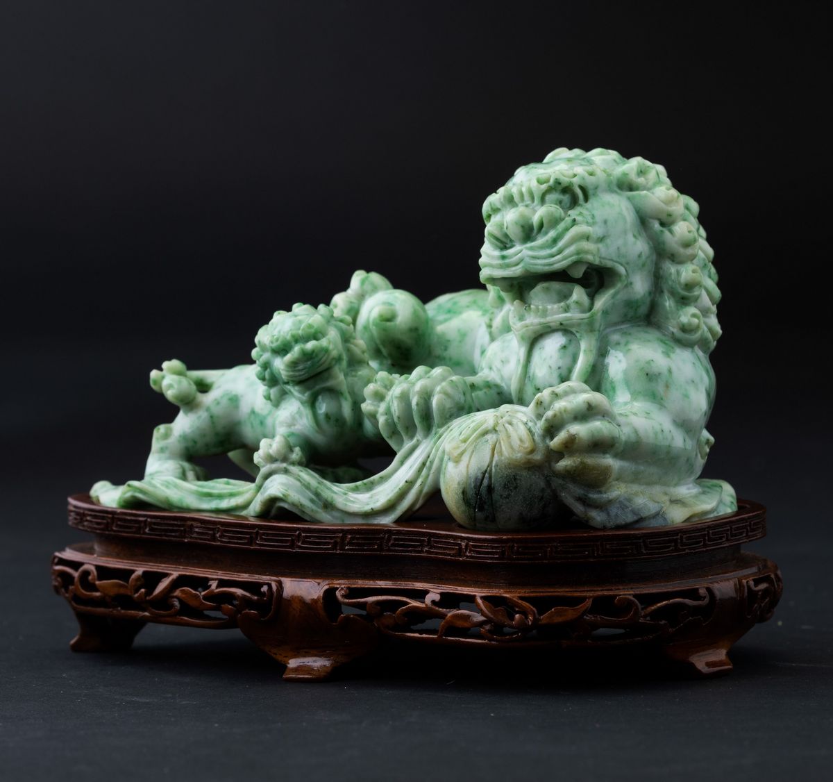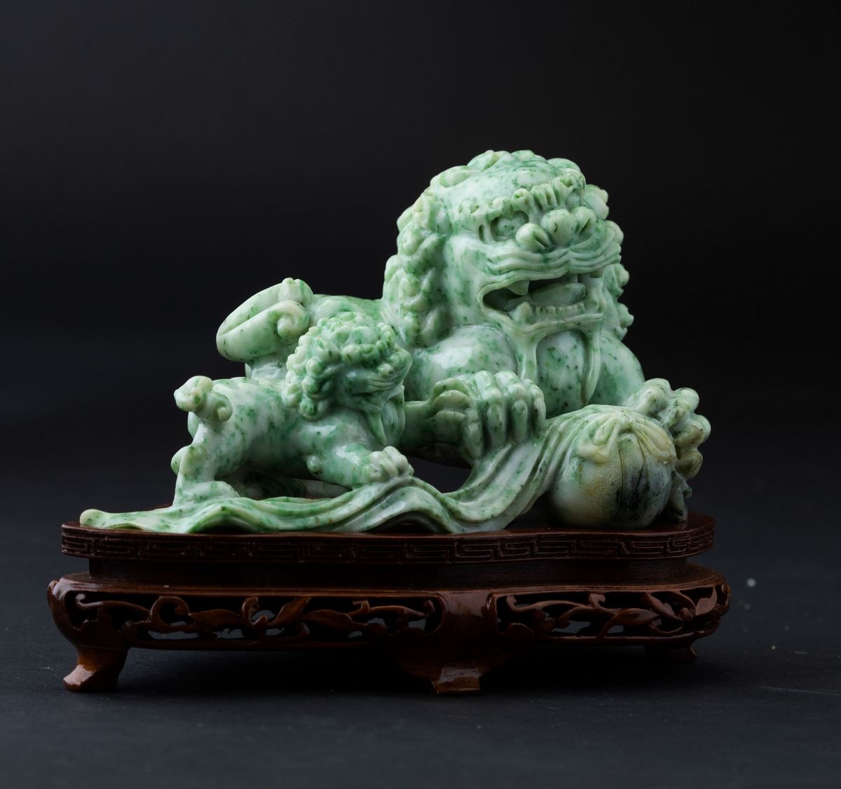 Gruppo in pietra dura con figure di leoni, Cina, XX secolo