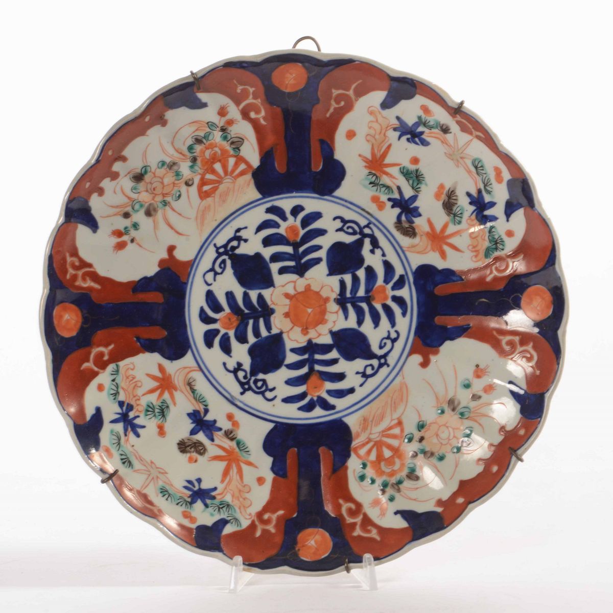 Piatto in porcellana Imari con decori floreali e soggetti naturalistici entro riserve, Giappone, periodo Meiji, XIX secol [..]