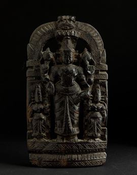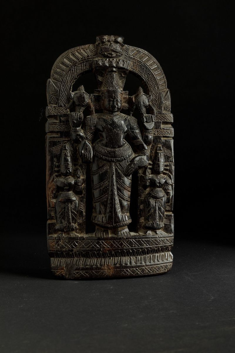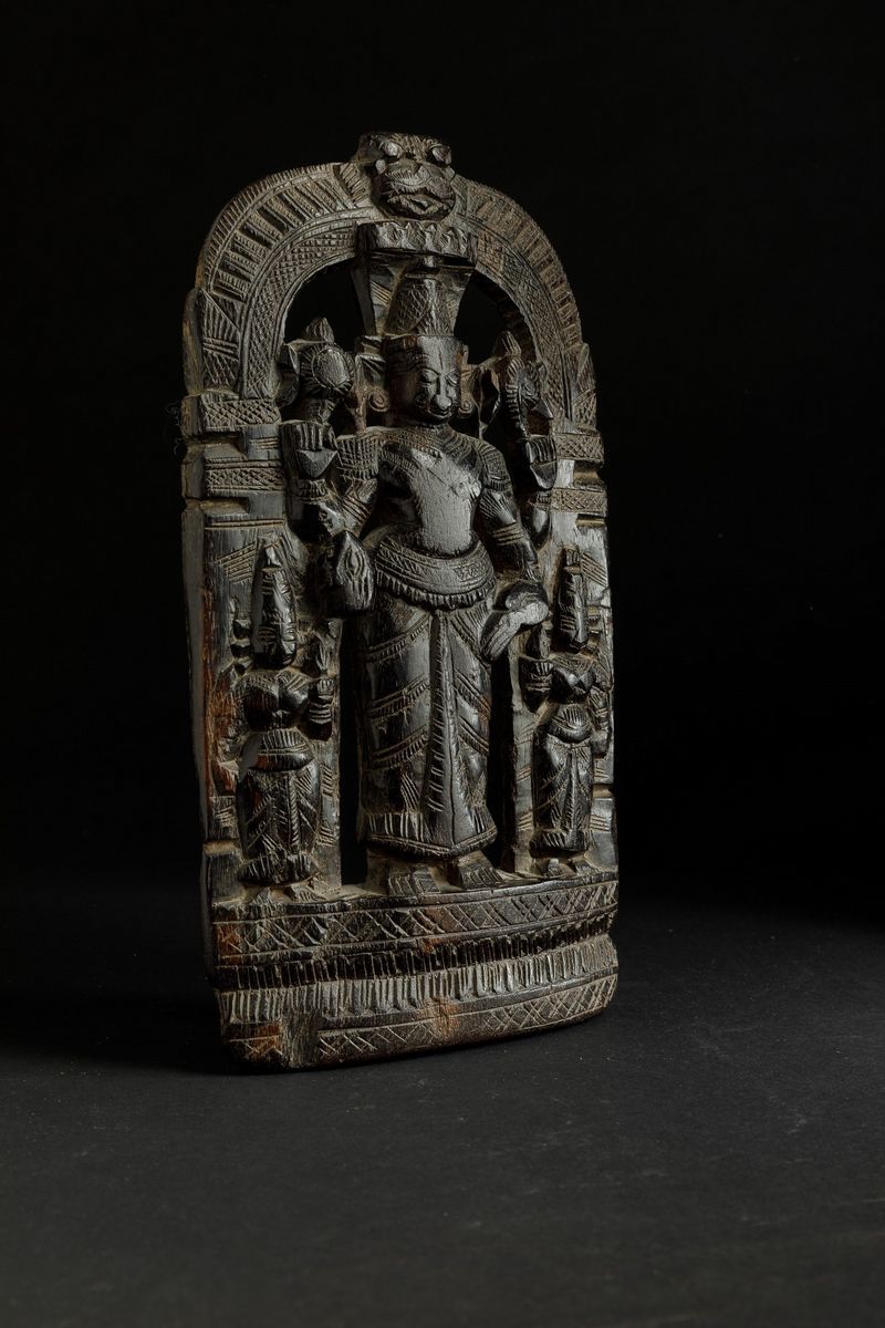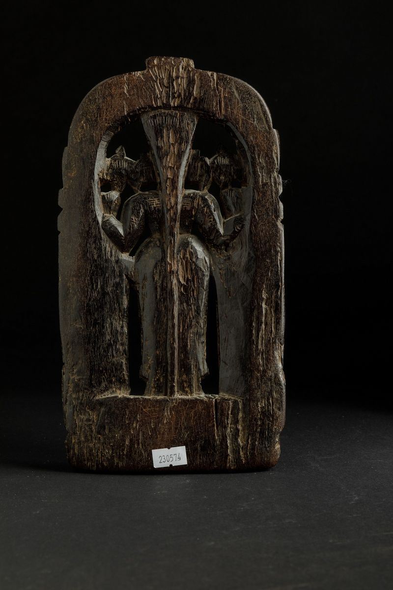Stele in legno raffigurante divinità con accoliti, India, XIX secolo