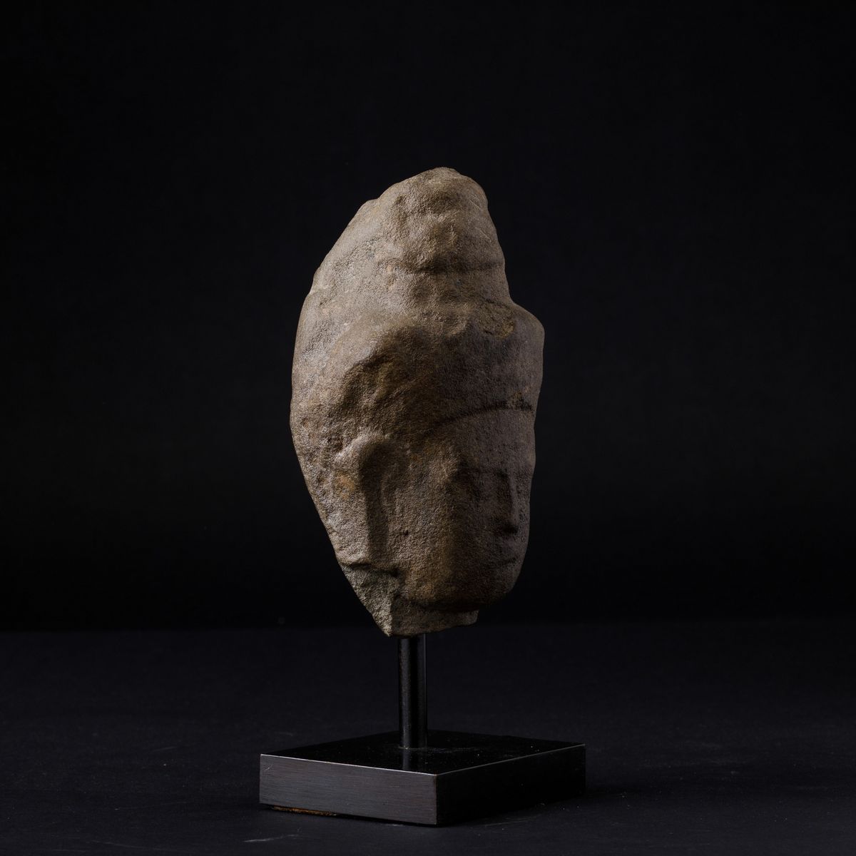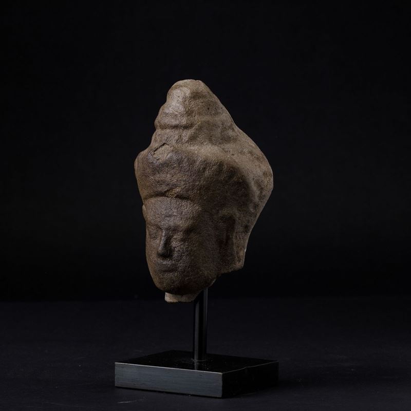 Testa di Buddha in pietra, India, XIX secolo
