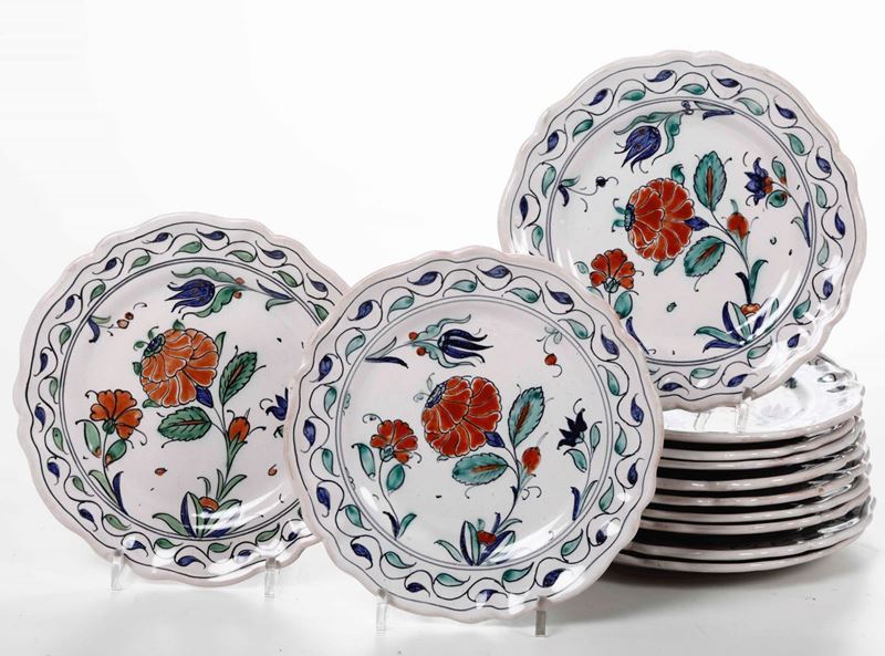 Dodici piatti di ispirazione Iznik Firenze, Manifattura Cantagalli, XX secolo