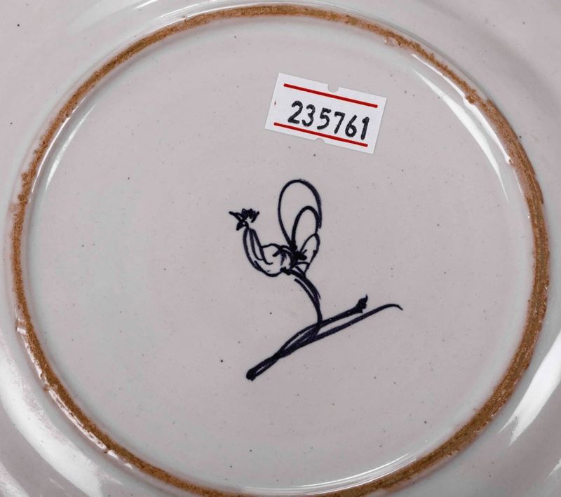 Maiolica. Marca: galletto in nero. Diametro cm 18,5. Conservazione: ottima