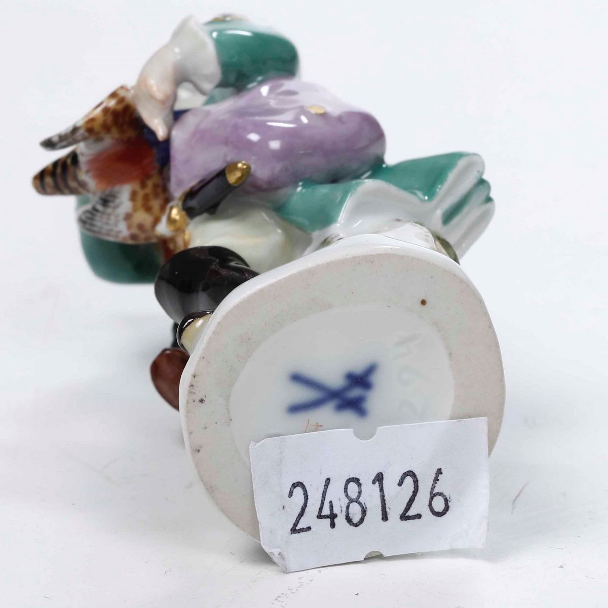 Porcellana policroma. Marca: spade in blu. Altezza cm 8; numero “2294” impresso. Conservazione: parte terminale del fucile rincollata