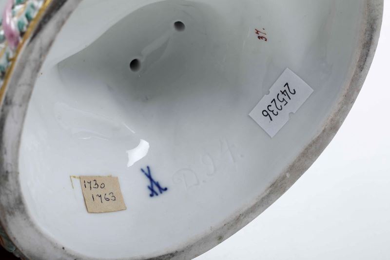 Porcellana. Marca: spade in blu; "D.94." inciso. Altezza cm 26. Conservazione: minime rotture alla vegetazione