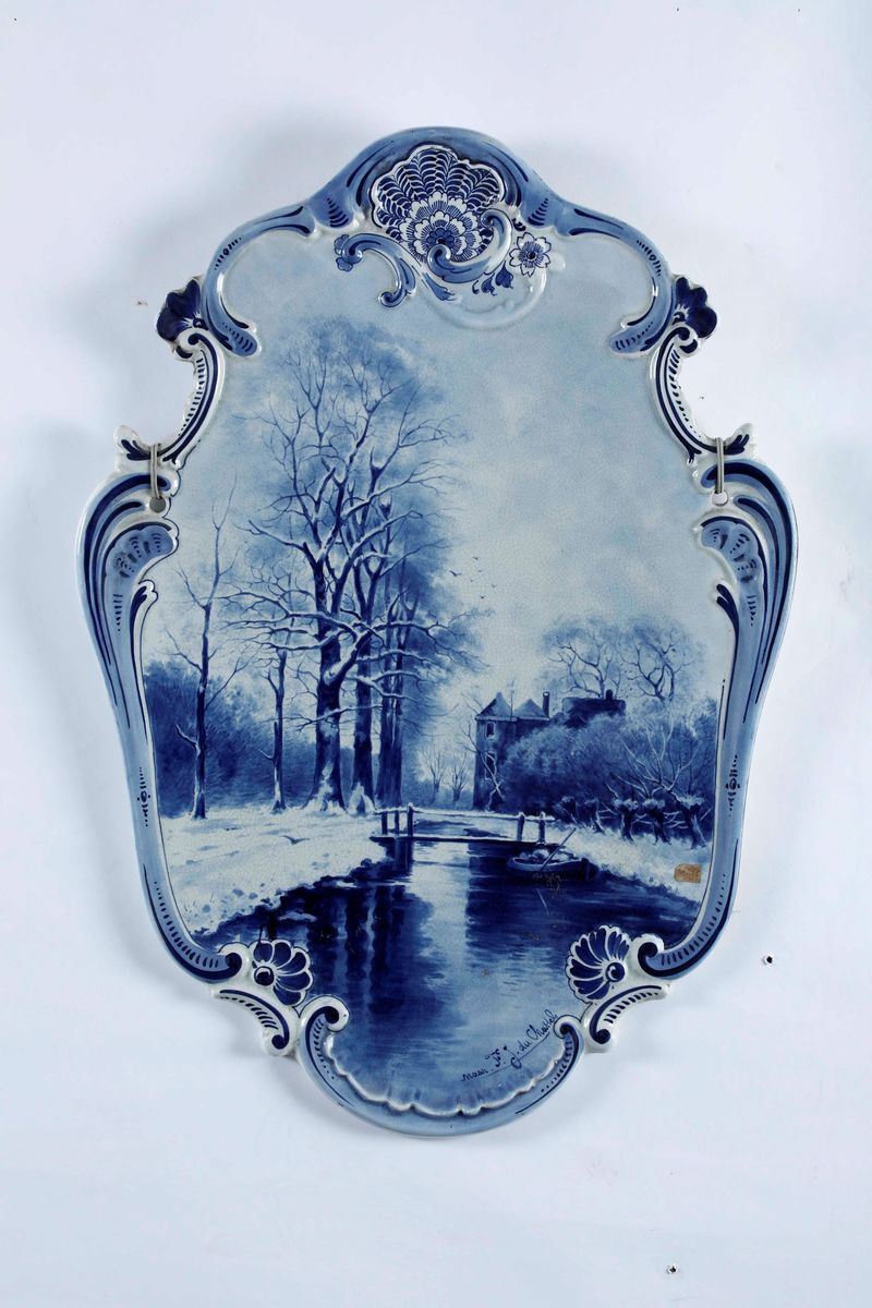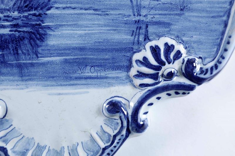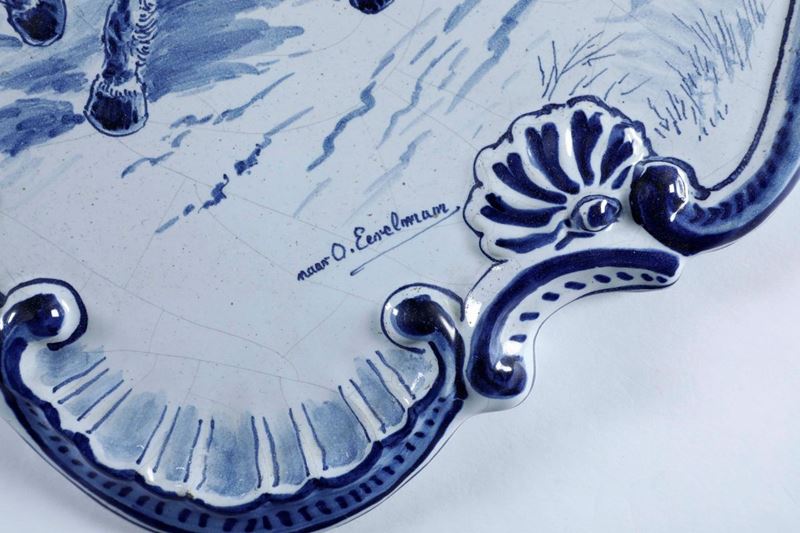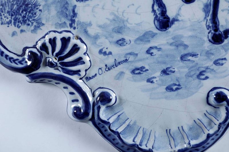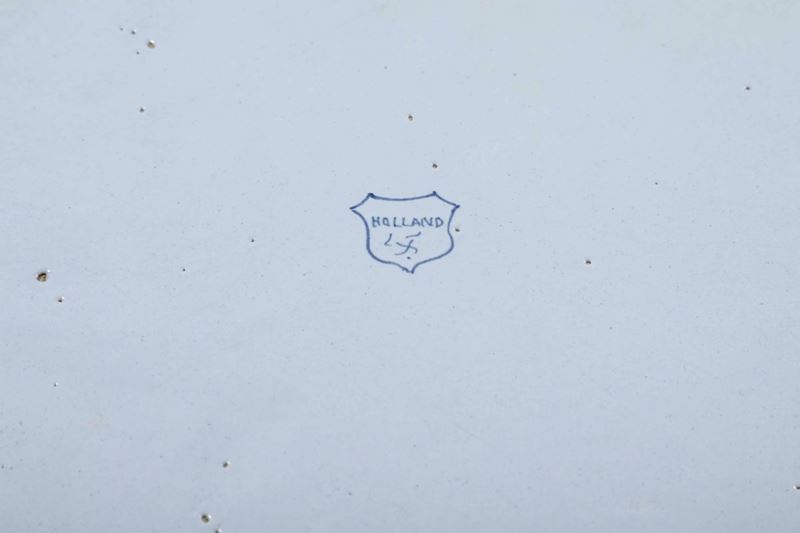 Maiolica decorata in monocromia blu di cobalto. Marche diverse; alcune firmate dall'artista. Dimensioni: cm 55x39 circa. Conservazione: ottima; minime sbeccature ai bordi; qualche cracquelures