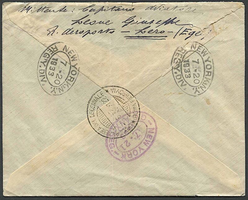 1933, Egeo, aerogramma del 7-6-1933 per New York.