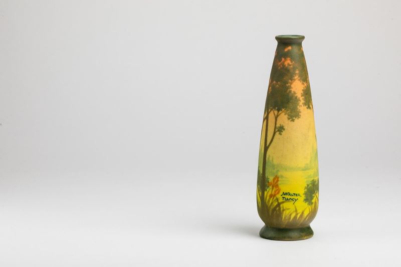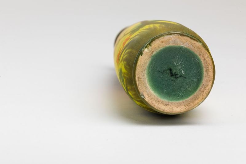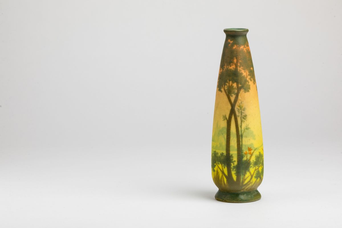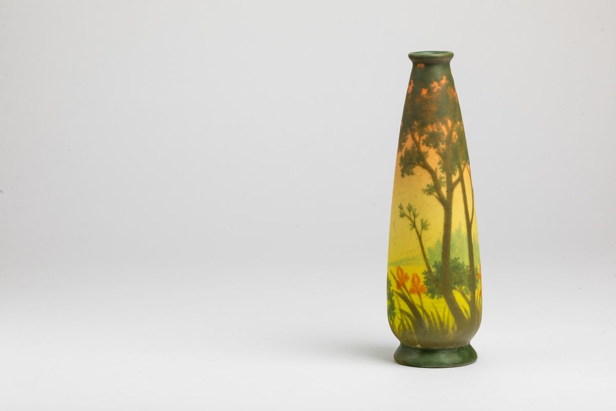 Vaso a goccia in ceramica a rilievo con decoro lacustre a smalti.