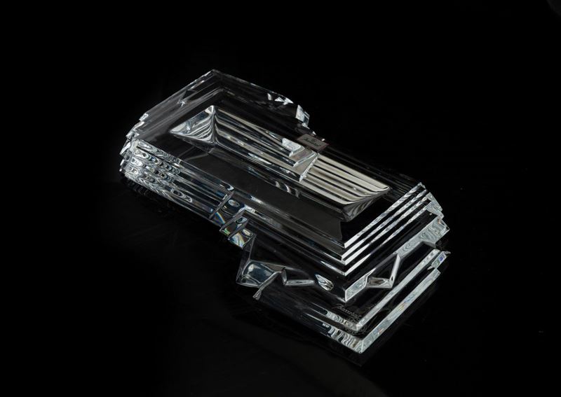 Posacenere in cristallo stampato da scrivania in stile deco.