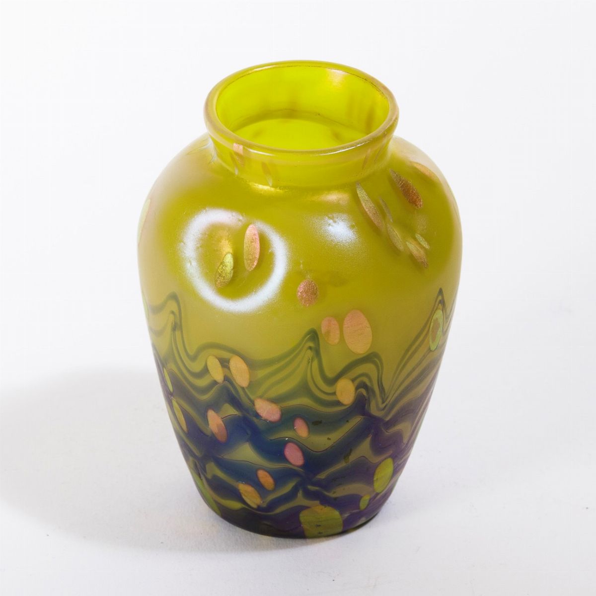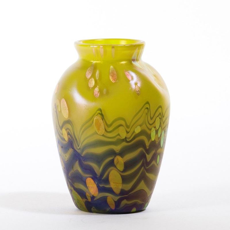 Piccolo vaso con decoro di macchie policrome.