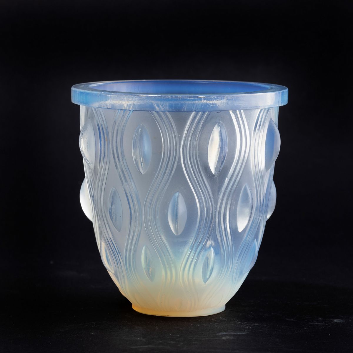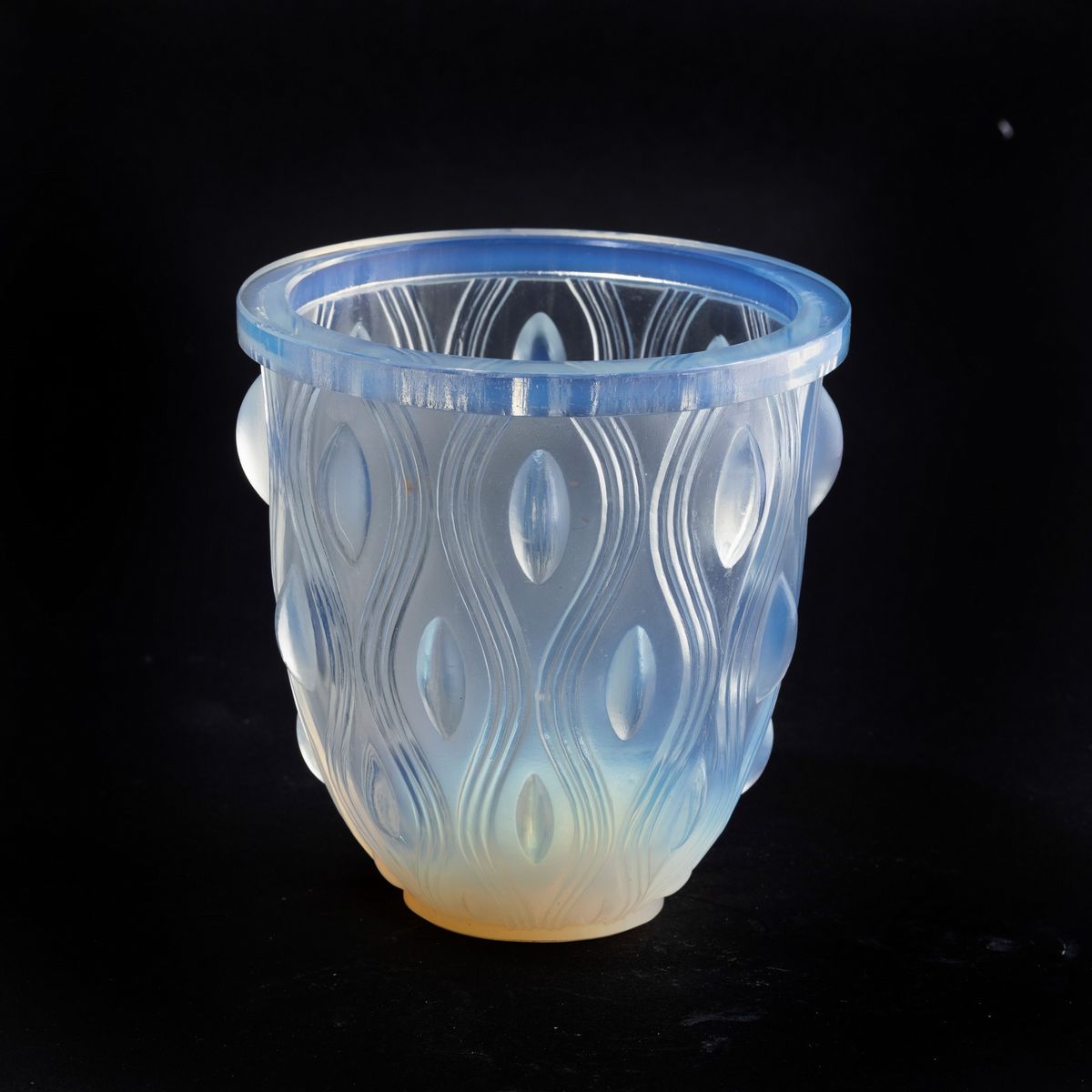 Coppa in vetro opalescente con decoro di ovali stampati.