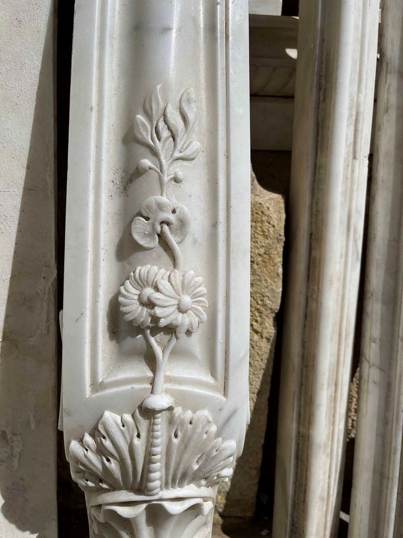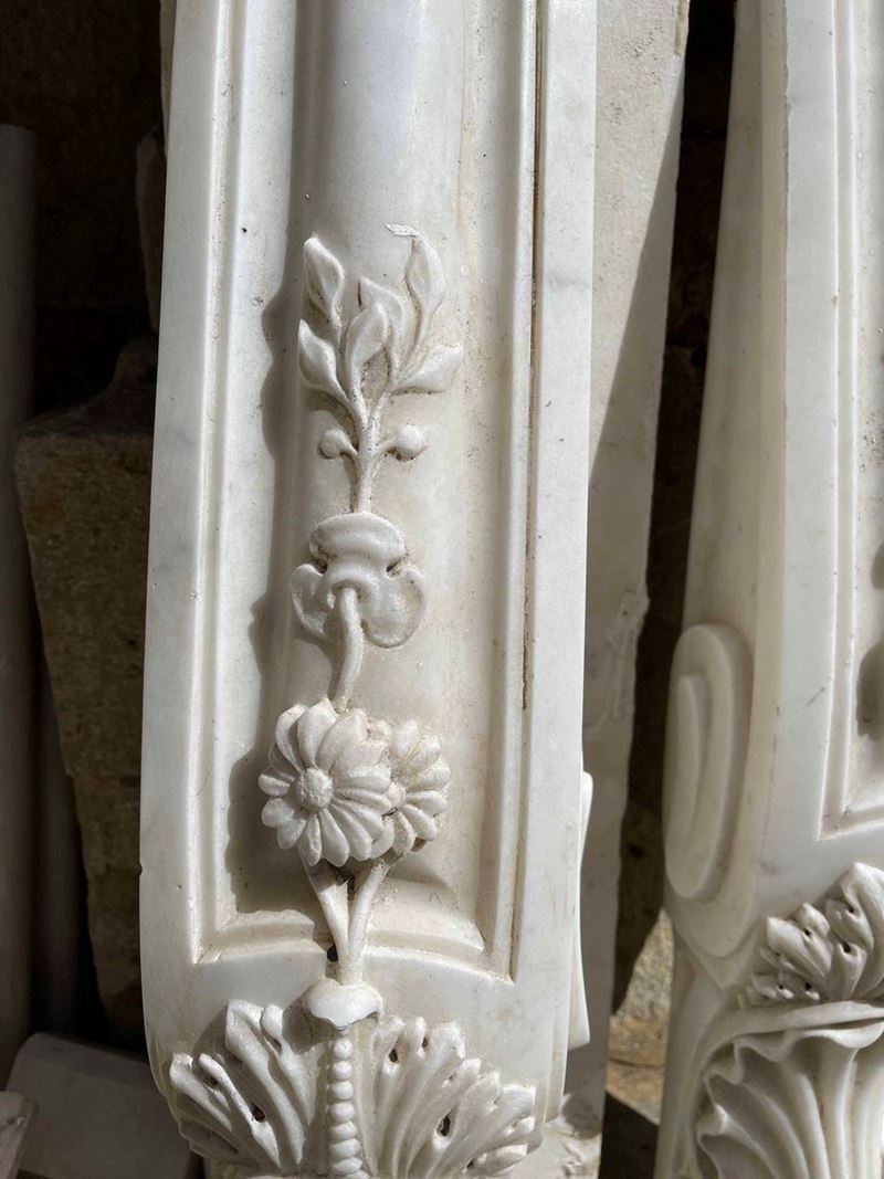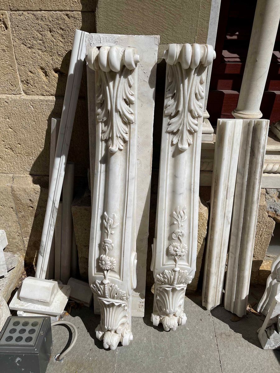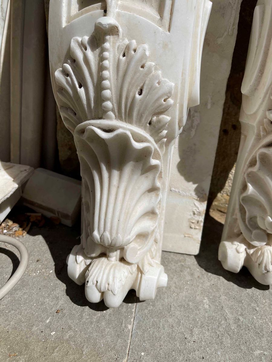 Fregio superiore scolpito a valva di conchiglia, volute e foglie