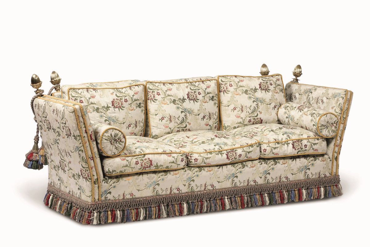 Coppia di divani "caccia" imbottiti, XX secolo