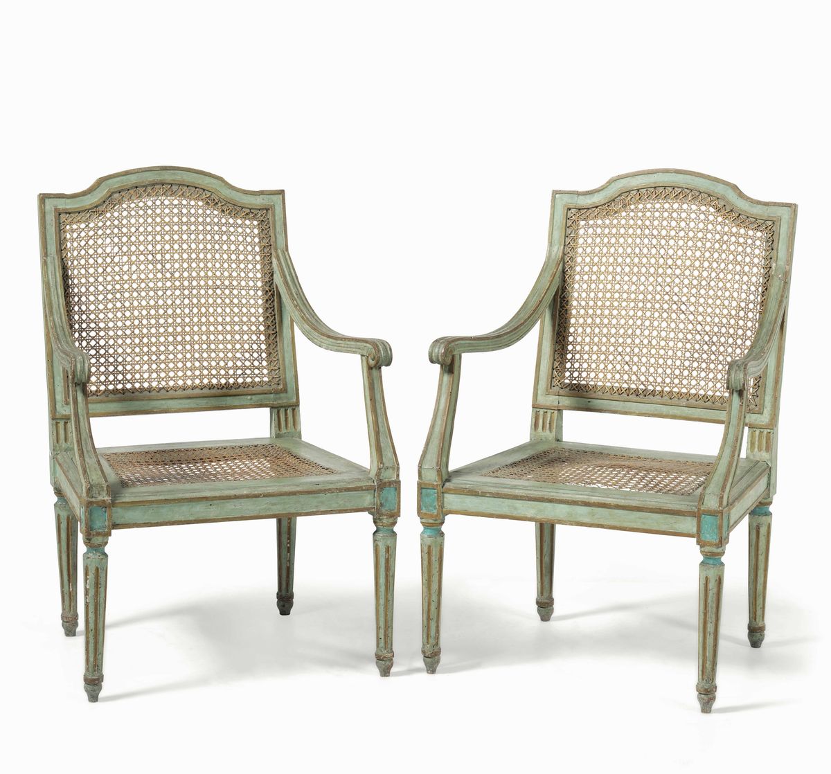 Seduta e schienale in canneté, gambe troncoconiche scanalate