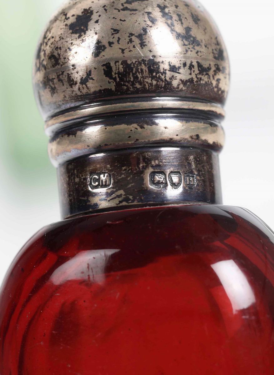 Smalti cloisonné e vetro, alcuni con tappi in argento con punzoni inglesi
