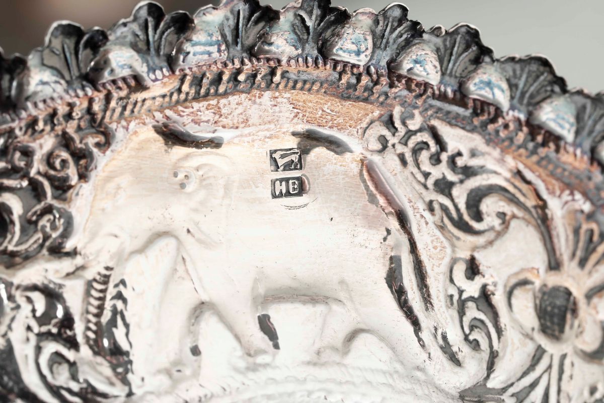 Lotto in argento composto da due piatti e una coppia di salierine. India, XX secolo