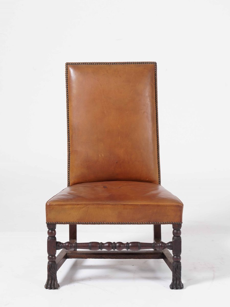 Poltrona a rocchetto in legno e pelle. XVII-XVIII secolo