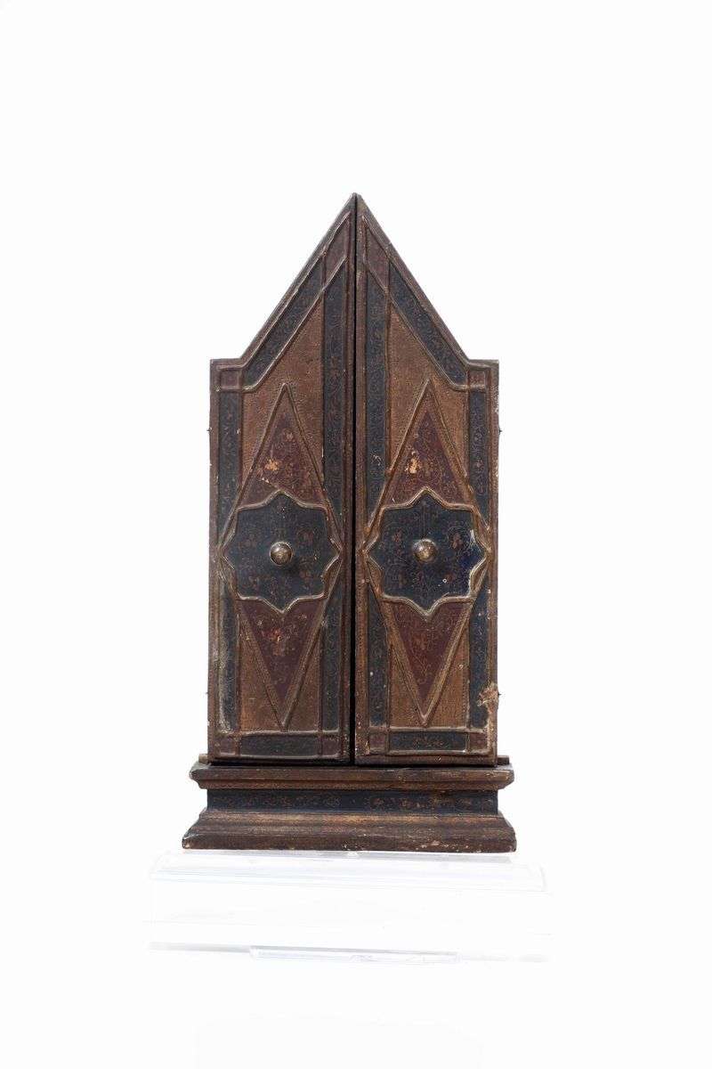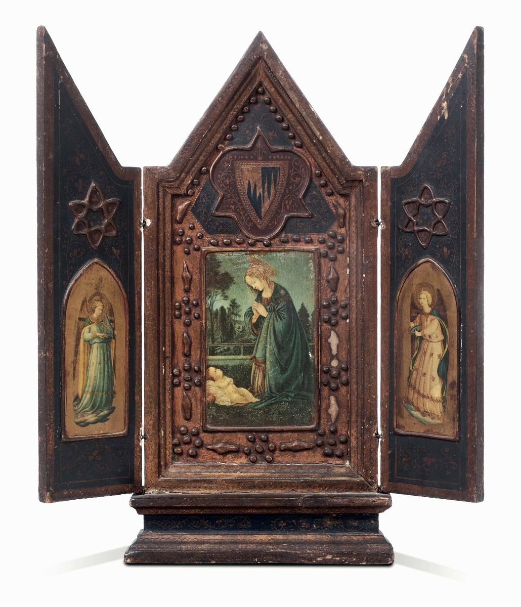 Scuola del XIX secolo Trittico raffigurante Madonna con Bambino e sante martiri