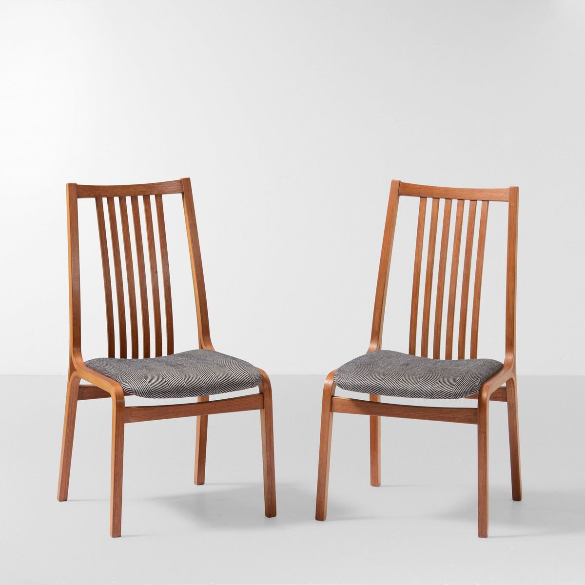 Due sedie con struttura in legno di teak e rivestimenti in tessuto Loro Piana.