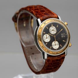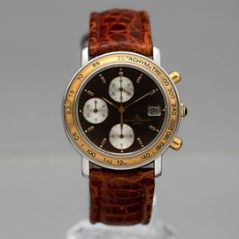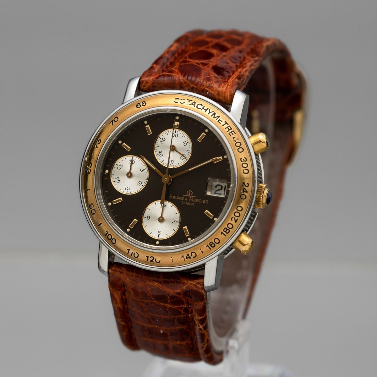 BAUME & MERCIER - Transpacific automatico acciaio e oro con quadrante nero contatori verticali e datario