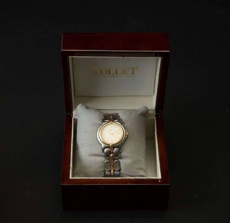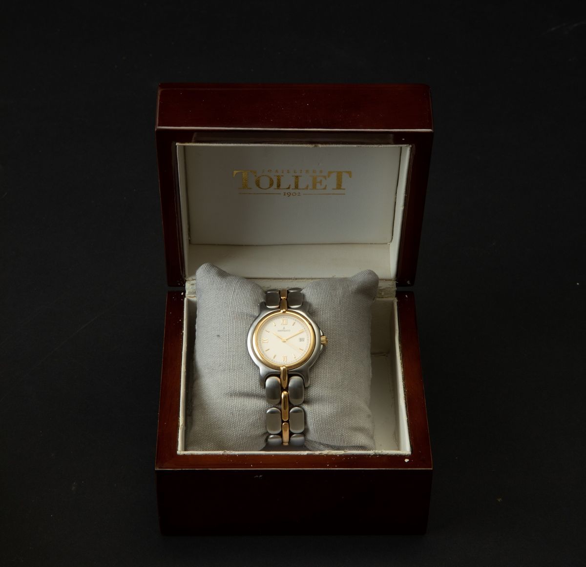 BERTOLUCCI - Pulchra Lady, orologio acciaio e oro al quarzo con datario, quadrante bianco con numeri Romani. Con maglia [..]