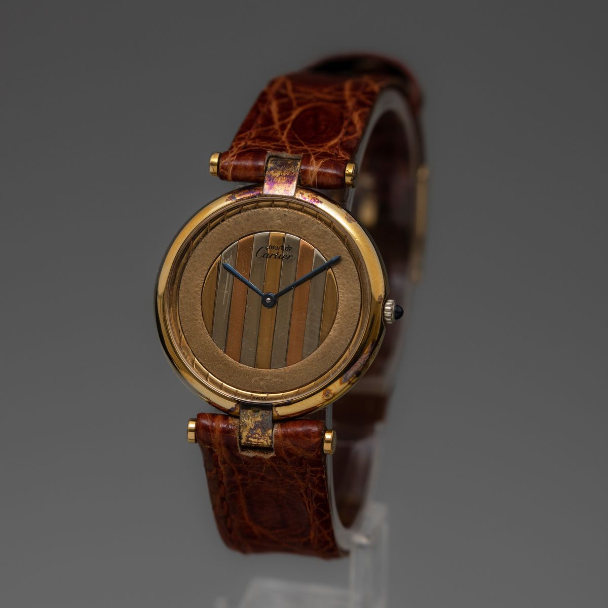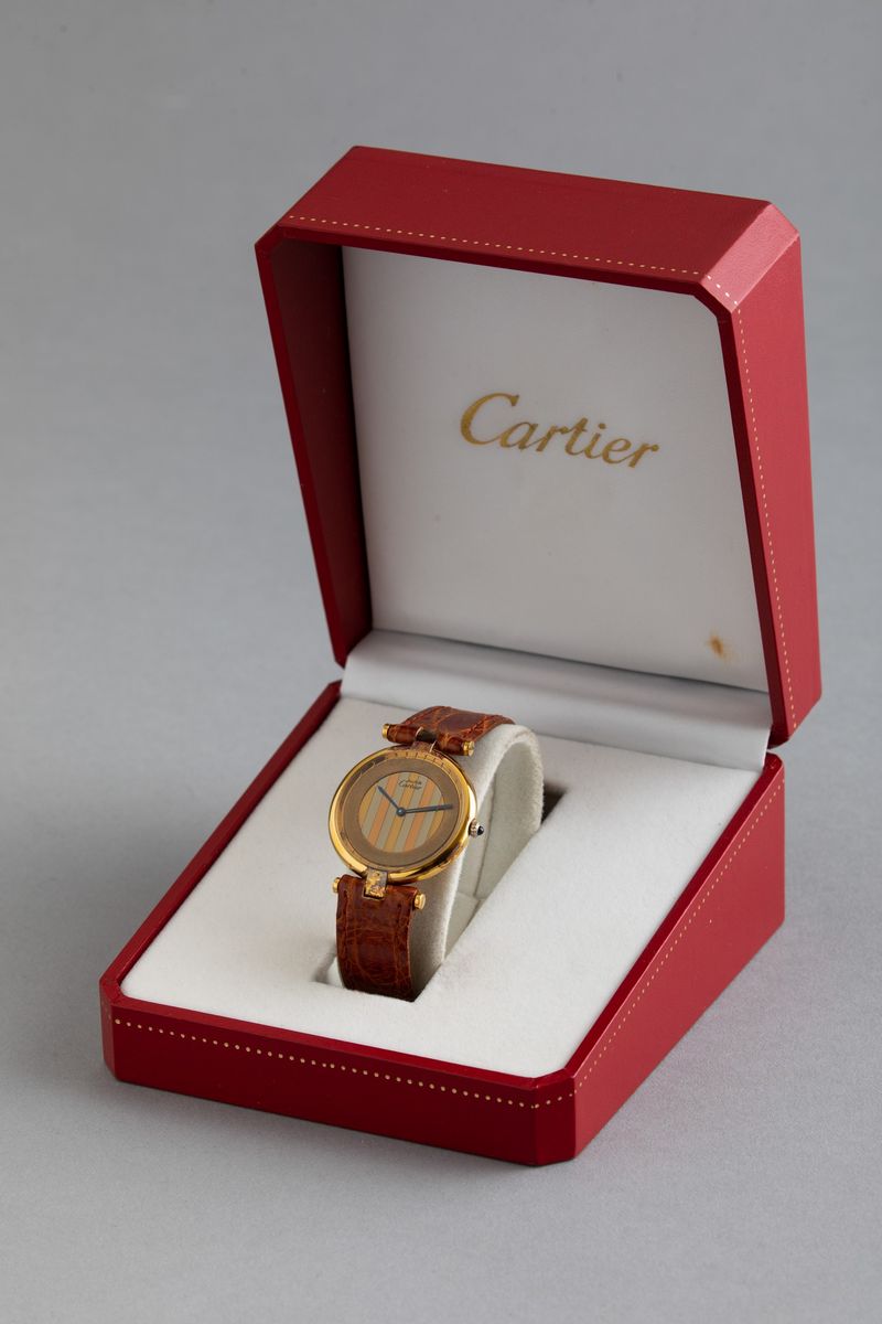 CARTIER - Vermeil in argento laminato al quarzo quadrante tridor con astuccio originle