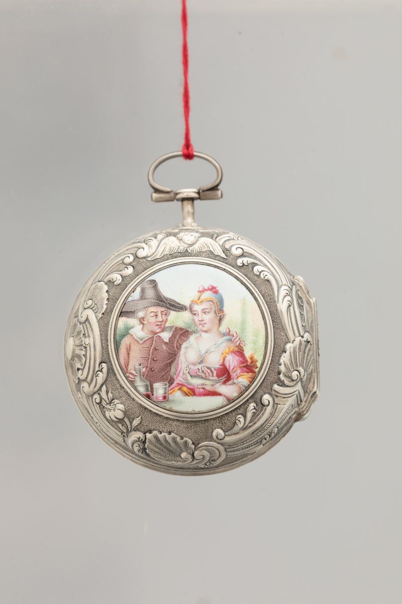 MARTINEAU A LONDON - Orologio da tasca con doppia cassa in argento, scappamento a verga e quadrante in smalto bianco