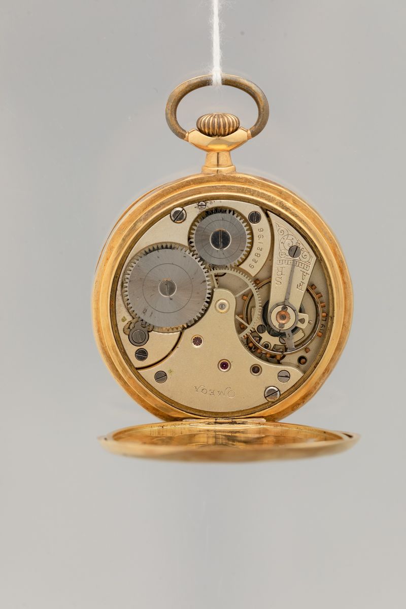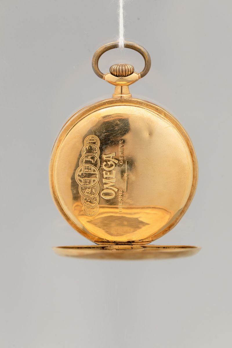 OMEGA - Orologio da tasca in oro 18k quadrante in metallo smaltato, movimento con scappamento ad ancora